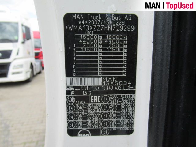 - front air suspension 7.5 t, rear air suspension 11.5 t, hub reduction rear axle Hypoid HY-1350, hypoid axle ratio i 2.53, fuel filter heating, cab insulation NORDIC, cross member for trailer coupling, wiring for tank truck to ADR, ADR Typ AT, equipment for dangerous goods to ADR, type OX, supply kit for semitrailer with lifting axle or moving-off aid, trailer socket 24V (15-pin)